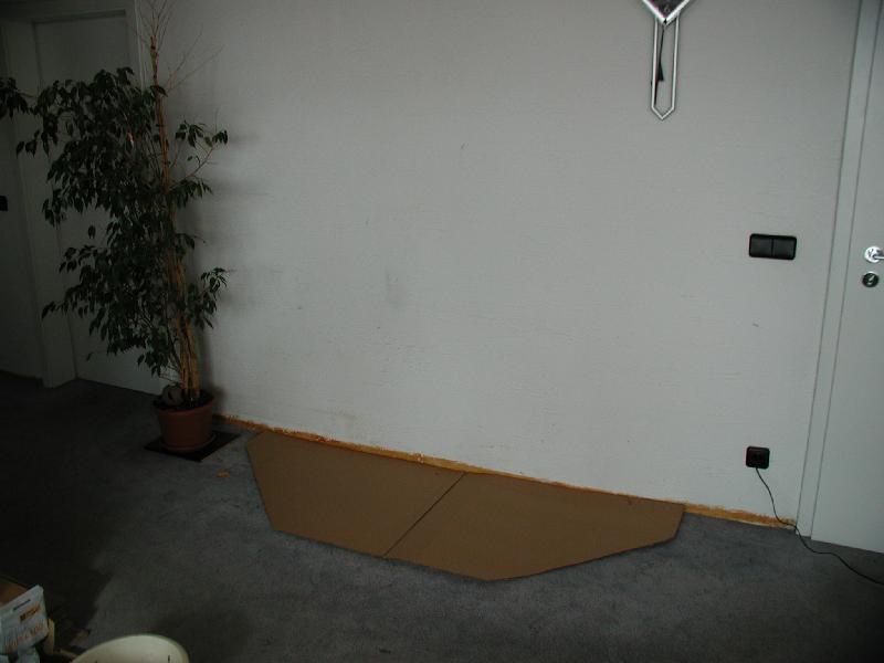 An dieser Stelle stand vorher das Delta und da kommt nun auch das neue Becken wieder hin. Erste "Anprobe" mit dem Pappdeckel...