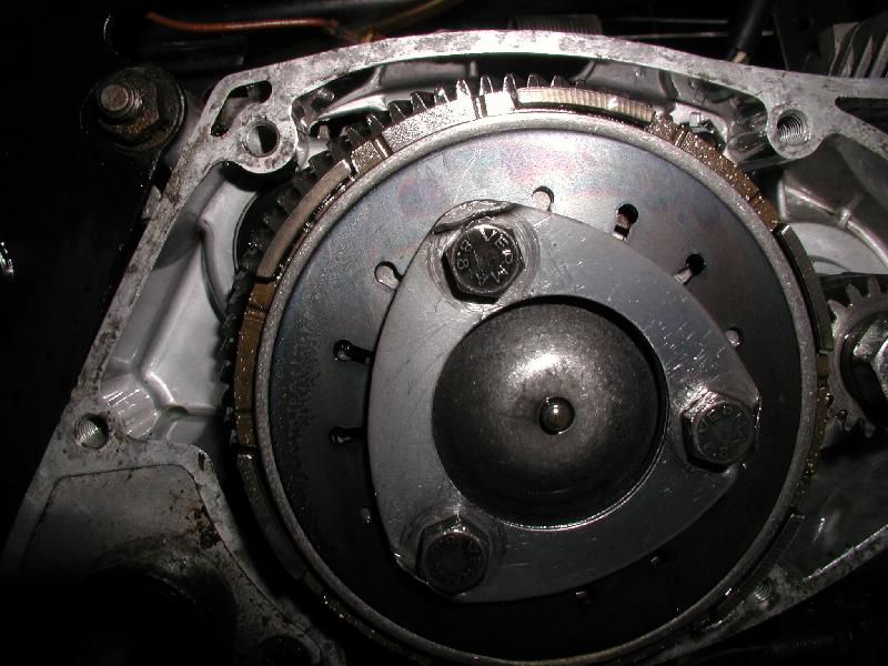 Die Schraube des Kupplungspaketes hatte sich gelöst, weil die Ecke des Sicherungsbleches nicht umgebogen worden war. Bei der Probefahrt ist das aufgefallen, durch eine schlecht trennende Kupplung, die zudem auch noch "unrund" griff.
