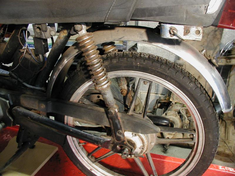 Vermutlich hat es einen Vorbesitzer mal fürchterlich geschmissen mit dem Gerät. Was gleich auffiel, waren die Rollerblinker, der fehlende Gepäckständer und die Fahrradpedale.