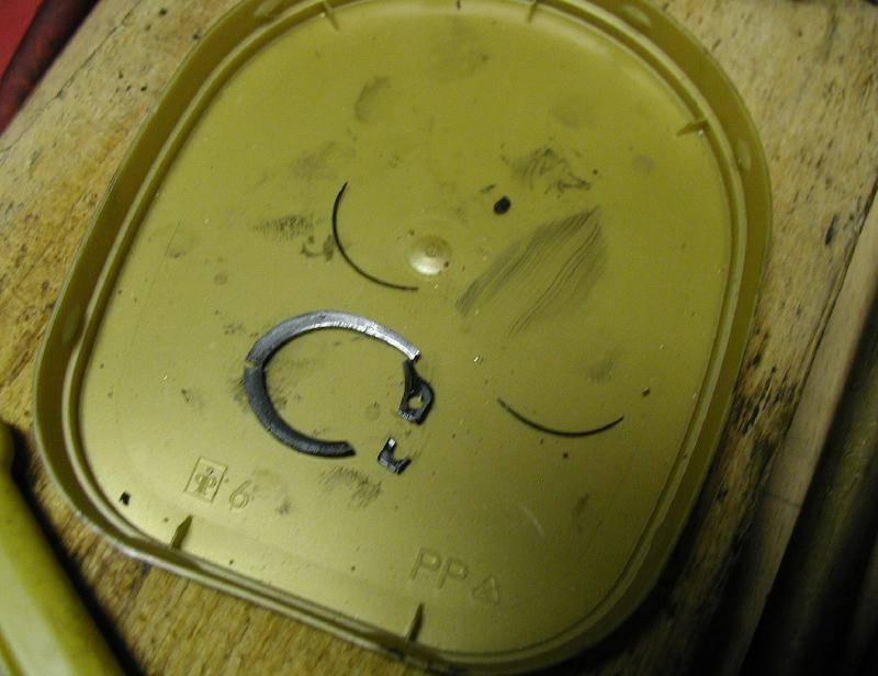 Den flüchtigen Sicherungsring auf dem anderen Ende der Tretwelle fanden wir dann auch im Ölsumpf.