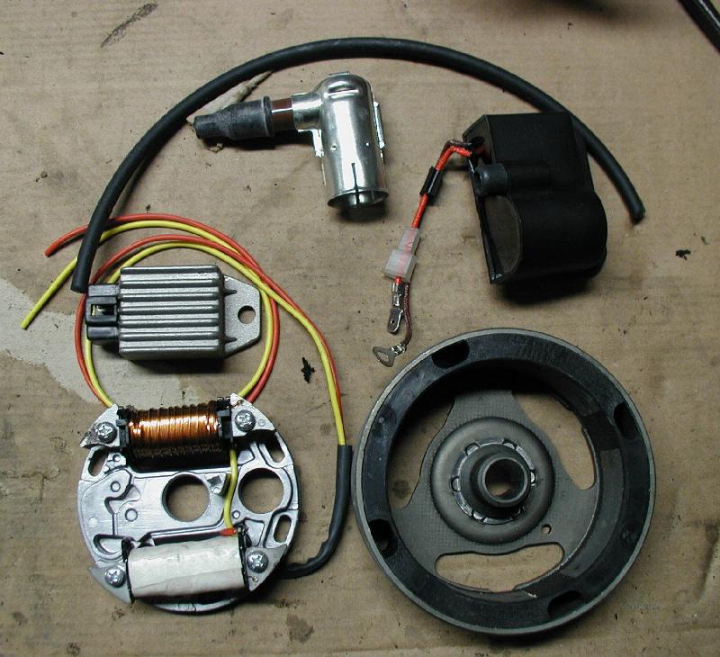 Das ist der Lieferumfang der kontaktlosen Zündanlage. Die 12Volt-Glühlampen haben den Fototermin verpaßt