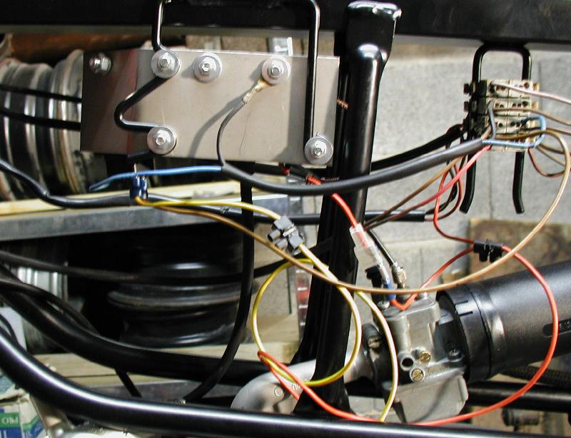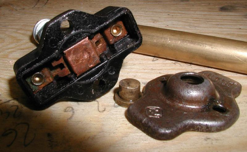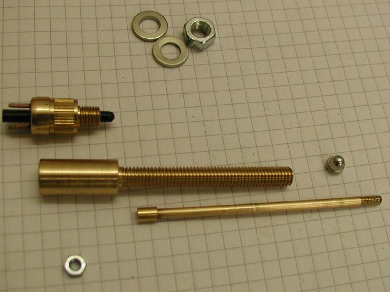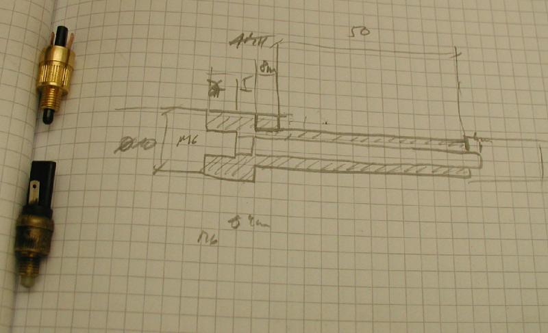 Hier noch zwei Bilder einer Zwischendurcharbeit, die aber schlußendlich für die Katz war. Bei den alten Bremslichtschaltern lies sich der Knopf (das Messingteil) bis hinter das Abdeckblech schieben und der blieb dann dort hängen.