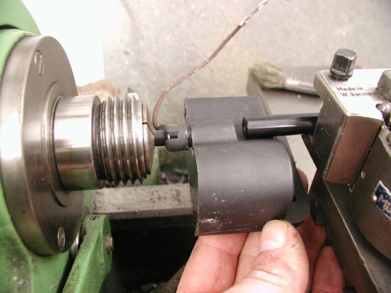 Allerdings habe ich eine gute Möglichkeit gefunden, das Kabel tief genug auf den Dorn zu würgen. Das Kabel kann mit einer Spannzange in der Drehmaschine gespannt werden Man läßt es ein kurzes Stück herausstehen und schiebt die Zündspule mit der Rückseite eines Drehmeisels auf das Kabel drauf. So bekommt man den Dorn mühelos ca. 8mm in das Kabel. Wenn man in das neue Kabel vorher nochmal einen Zündkerzenstecker schraubt, um damit eine Art Vorbohrung zu machen, gehts noch einfacher.