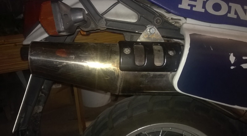 Der Auspuff meiner XL war noch relativ gut, also so gut, um sich den auch mal wegzustellen und ein anderes Exemplar aufzubrauchen. Ich hatte den Auspufftopf und den Krümmer zwar erst neu lackiert (VHT Auspufflack mit Grundierung), aber als mir bei der Suche nach einer Sitzbank dazu ein Auspuff aus Edelstahl angeboten wurde, mußte ich zuschlagen.